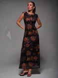 Floral Fit & Flare Mesh Dress, Amber/Black