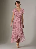 Jolie Moi Floral Wrap Front Midi Dress, Dusty Pink
