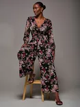 Floral Lace Tie Waist Jumpsuit, Black/Multi