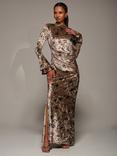 Jolie Moi Mesh Floral Mirrored Midaxi Dress, Teal Floral
