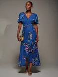 Jolie Moi Floral Frill Maxi Dress, Navy/Pink