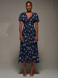 Floral Short Sleeve Mesh Dress, Navy/Multi