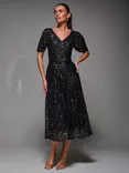 Jolie Moi V-Neck Frill Sleeve Chiffon Midaxi Dress