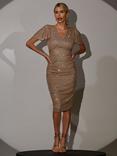 Jolie Moi Flared Ruched Sequin Dress, Bronze