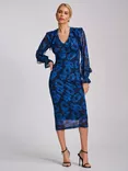 Abstract Ruffle Mesh Bodycon Dress, Blue
