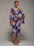 Abstract Ruched Mesh Bodycon Dress, Purple Abstract