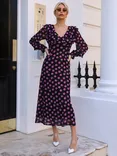 Polka Dot V-Neck Mesh Midaxi Dress, Black/Fuchsia