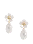 Floral Pearl Drop Earrings, Gold