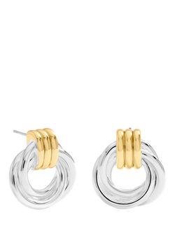 Two Tone Twist Hoop Earrings, Gold/Silver
