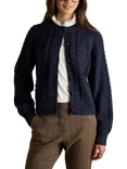 Crew Neck Cable Knit Cardigan, Navy