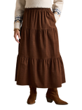 Corduroy Tiered Midi Skirt, Brown