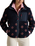 Joules Holkham Floral Waterproof Packable Raincoat, Black