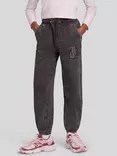 Kids' Diamante Logo Loose Joggers, Black Oyster