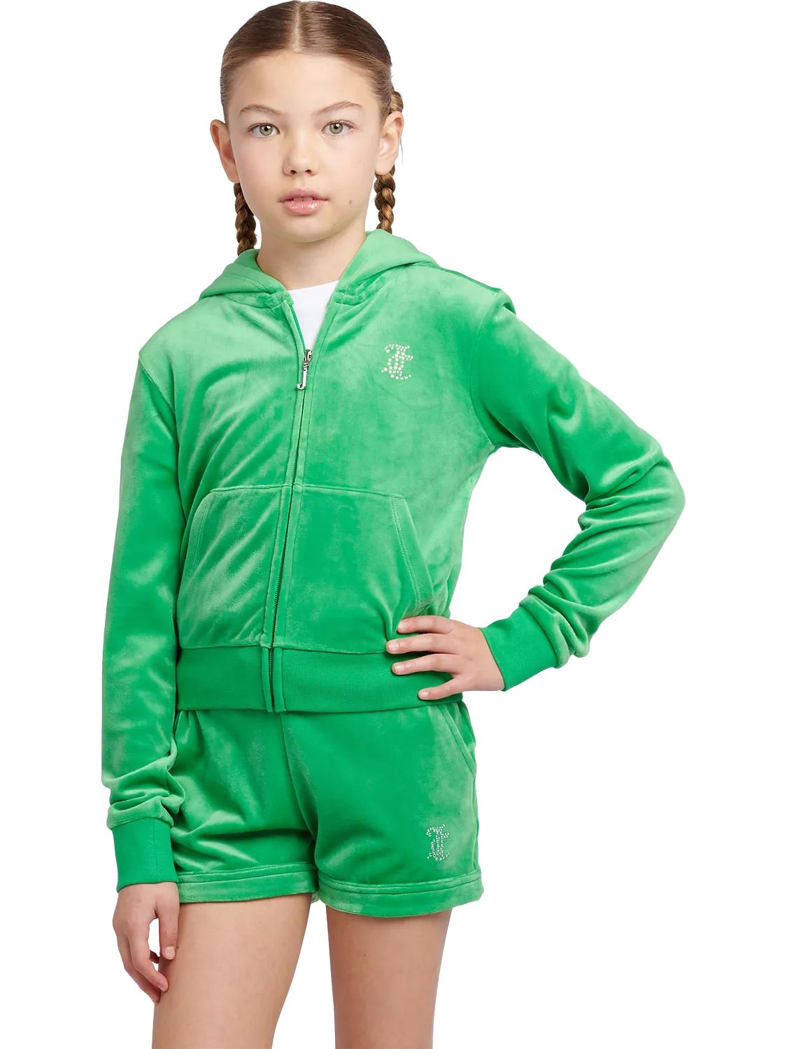 Juicy Couture Kids' Mini Diamante Zip Hoodie, Dapple Grey