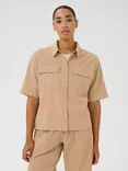 KAFFE Naya Button Tab Sleeve Shirt, Beige