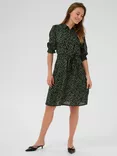 KAFFE Hera Amber Leopard Relaxed Fit Knee Length Dress, Green/Multi