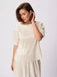 KAgalexi Short Sleeved Metallic Blouse, Gold