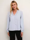 Maibritt V-Neck Frill Shirt, Blue/White