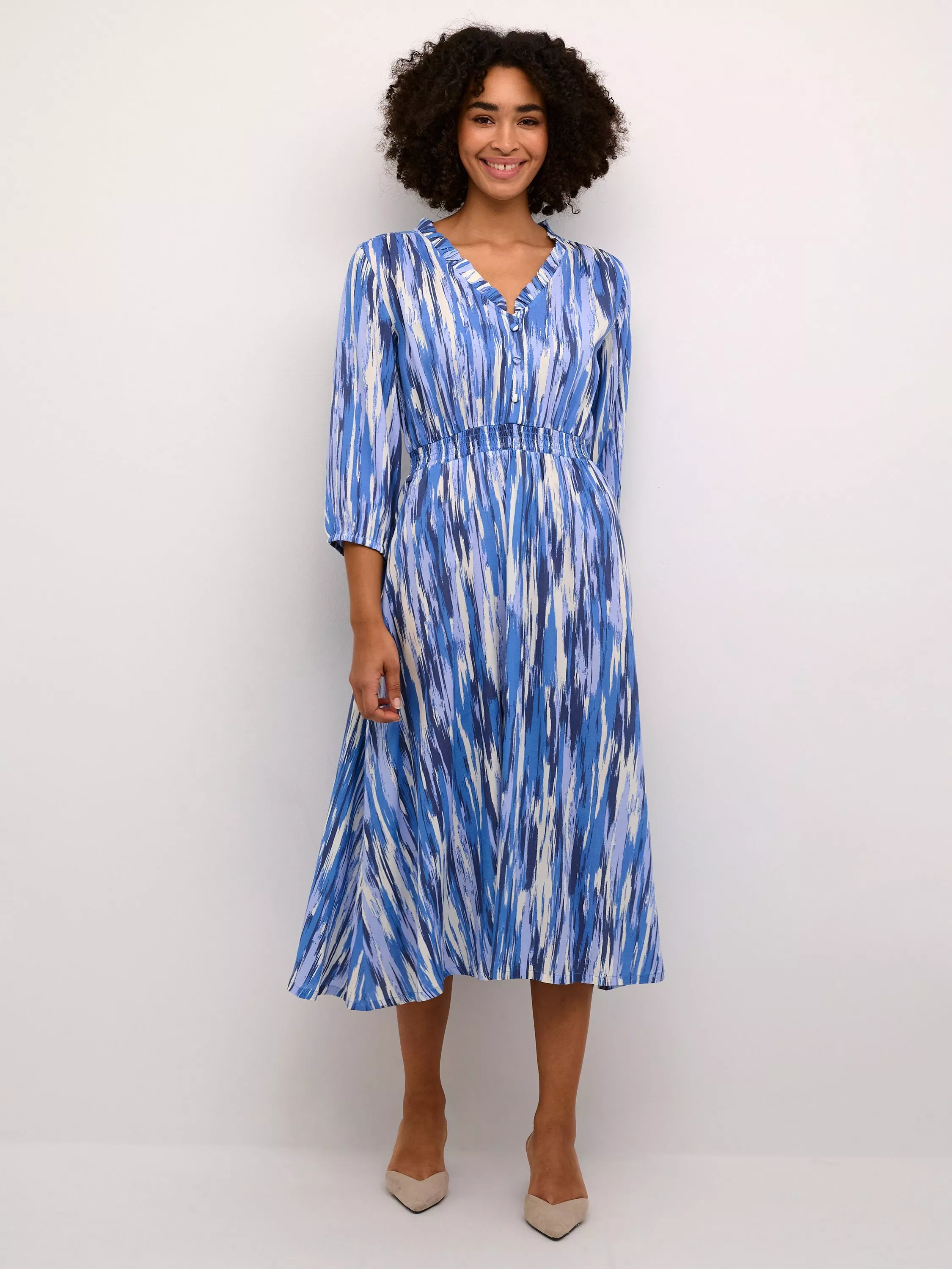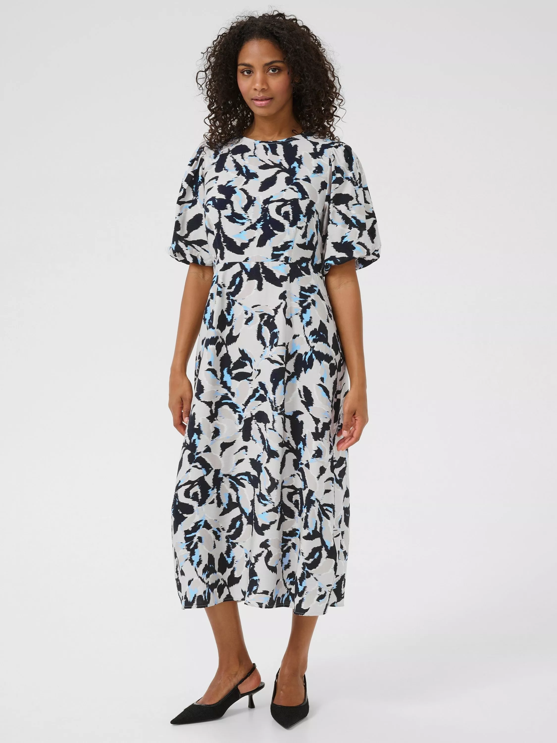 KAFFE Paco Floral A-Line Short Sleeve Midi Dress