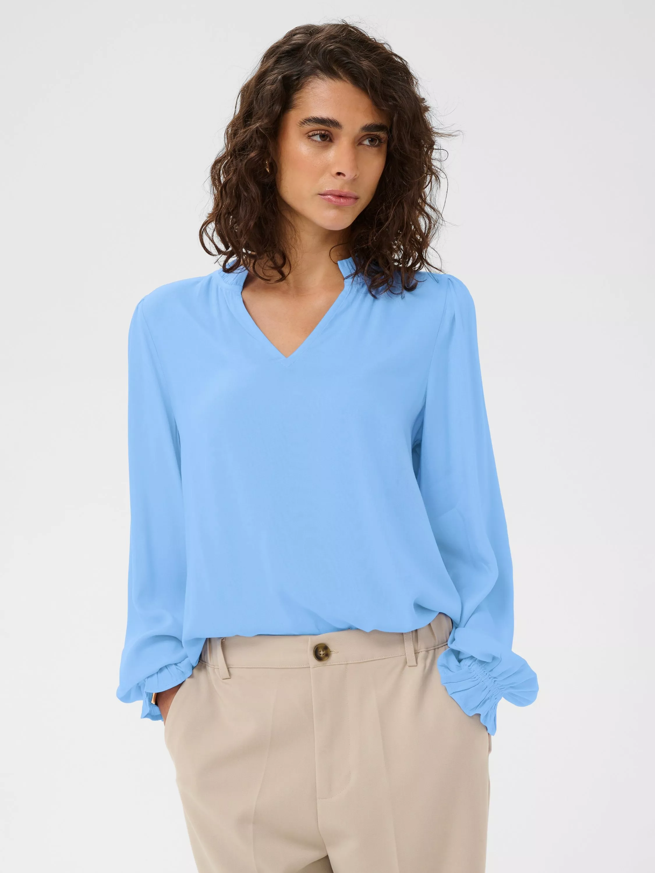KAFFEElly V-Neck Ruffle Top containing LENZING™ ECOVERO™ Viscose£39.99Vista Blue is availablePink Power is available+ More colours available