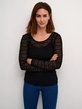 Nanna Stripe Long Sleeve Round Neck Lace T-Shirt