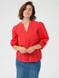 KAFFE Jollia Zia Notch Neck Top, Hibiscus