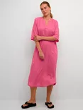 Milia Midi Length Kaftan Linen Blend Dress, Hot Pink
