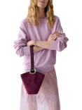 Halo Suede Bucket Bag, Purple Agate