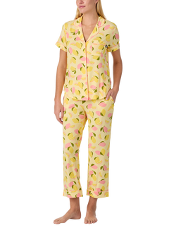 Lemon Party Button Down Cropped Pyjama Set, Yellow/Pink