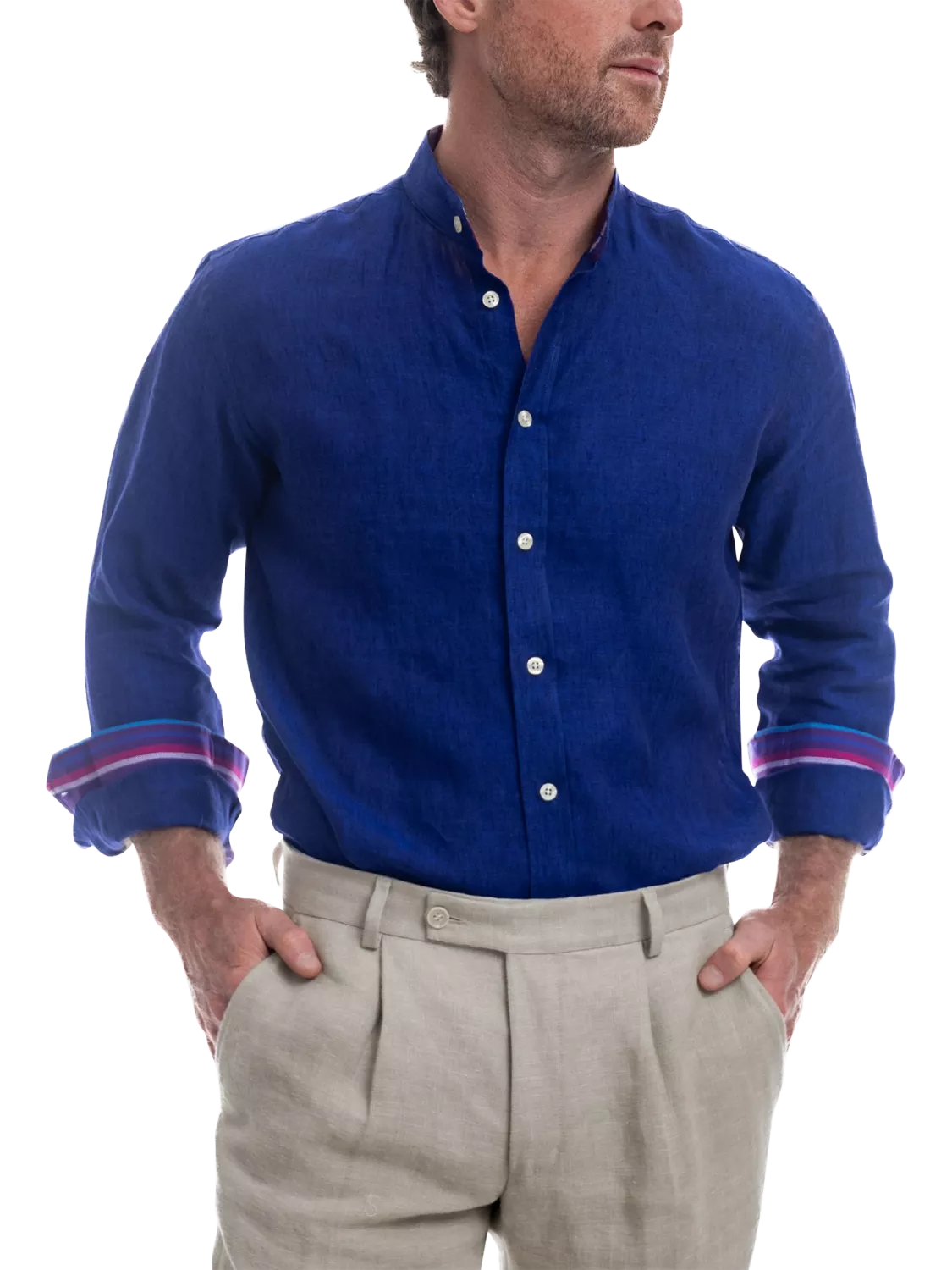 KOY Linen Striped African Kikoy Regular Fit Grandad Collar Shirt£120.00View this product in other colours by selecting one of the following:This colour is availableThis colour is availableThis colour is available