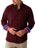 Cotton Regular Fit Striped African Kikoy Needle Corduroy Shirt, Red Burgundy