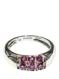 L & T HeirloomsPre-Loved Rhodium Plated 9ct Yellow Gold Ruby and Cubic Zirconia Floral Cluster Ring£230.00