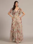 Shelby Floral Tulle Maxi Dress, Brown/Multi