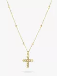Beaded Chain Cross Pendant Necklace, Gold