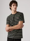 Original Housemark Crew Neck Stripe Cotton T-Shirt, Jet Black