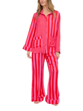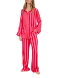 Evie Stripe Button Through Long Pyjama Set, Pink