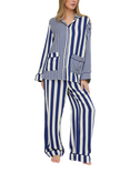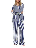 Evie Stripe Button Through Long Pyjama Set, Navy