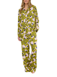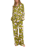 Evie Blurred Floral Button Through Long Pyjama Set, Green