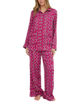 Evie Leopards Button Through Long Pyjama Set, Burgandy