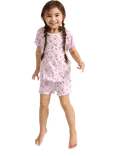 Kids' Cotton Floral Print Shortie Pyjama Set, Light Lilac
