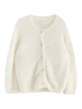 Kids' Feather Yarn Cardigan, Light Dusty White