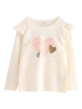 Kids' Cotton Blend Frill Sleeve Heart Print T-Shirt, White