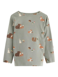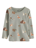Lindex Kids' Summer Woodland Print Long Sleeve Dress, Light Dusty Green