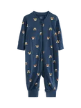 Lindex Baby Cotton Zip Front Fox Print Pyjama Suit Set, Light Aqua