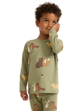 Lindex Kids' Summer Woodland Print Long Sleeve Dress, Light Dusty Green