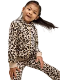 Kids' Velour Zipped Leopard Print Hoodie, Beige