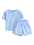 Baby Cotton Shell Print T-Shirt & Shorts Set, Light Blue