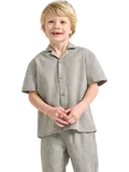 Lindex Kids' Linen Cotton Blend Short Sleeve Shirt, Dusty Green