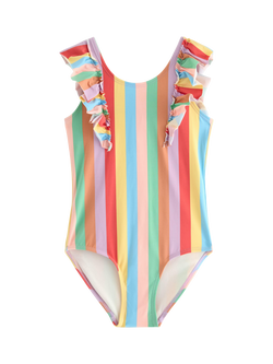 Kids' Ruffle Shoulder Unicorn Print Swimsuit, Pink