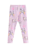 Kids' Elasticated Kitten Print Leggings, Light Lilac